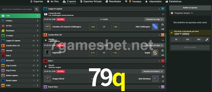 O 79q oferece uma grande seleção de opções de apostas em e-sports com probabilidades competitivas
